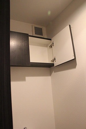 トイレ上部の吊戸・手前のタオル掛け上部にはバスタオルなどを置いて頂けます